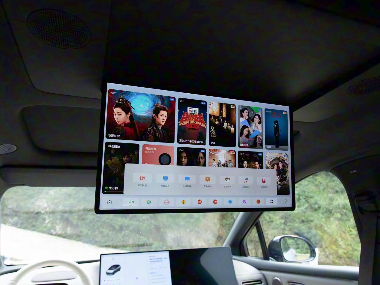 内饰也不需要啰嗦了,都是一样的设计风格,15.7英寸中控屏+15.7英寸副驾驶娱乐屏我们已经很熟悉了,内置高通骁龙8295芯片,并且配备了HUD抬头显示,这方面,理想i6和i8基本上保持了一致。