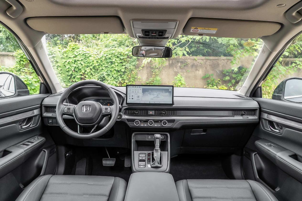 本田CR-V的内饰布局相对比较传统,真皮方向盘+传统机械挡把,并且配备了真皮座椅,除了照顾了舒适性,还具备基本的调节功能。车机由10.2英寸彩色全液晶仪表盘+12.3英寸中控屏组成,中控屏搭载Honda CONNECT操作系统,标配了4G网络、主驾语音识别等功能,而且支持应用下载。其次,车内还配备了带后排出风口的自动空调、主动降噪系统、12V行李舱电源接口等便捷配置,进一步丰富了用车生活。