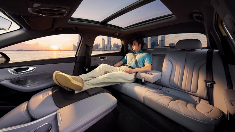 车内配备同级唯一的全景沙发躺椅,支持副驾一键折叠,可实现后排专属超长腿托,视野角度增加38°。