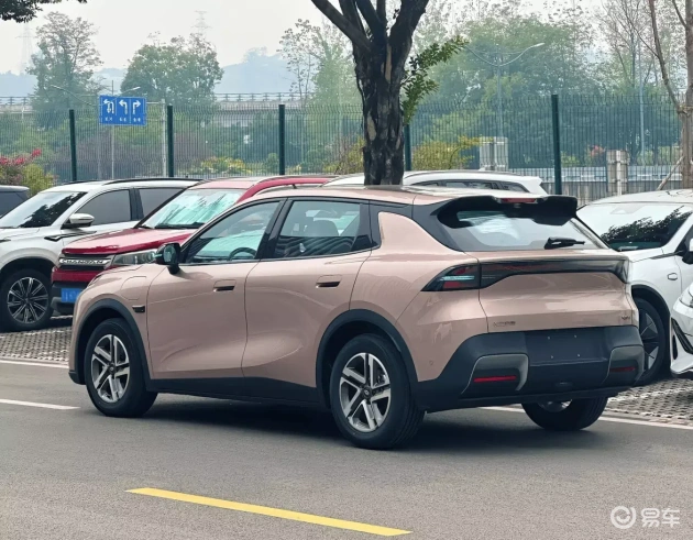 车身尺寸为长4435毫米、宽1855毫米、高1600毫米,轴距2735毫米,较同级车型比亚迪元UP略大。车身侧面呈现出饱满、灵动的姿态,悬浮式车顶配合不规则尾翼以及后包围处的夸张熏黑扩散器,进一步提升了整车的运动气质。贯穿式尾灯和半隐藏式门把手的加入,带来了时尚前卫的属性,并提供17/18英寸多种轮毂,以及松野绿、流金紫、月华银、云影灰和云锦白五种配色选择。