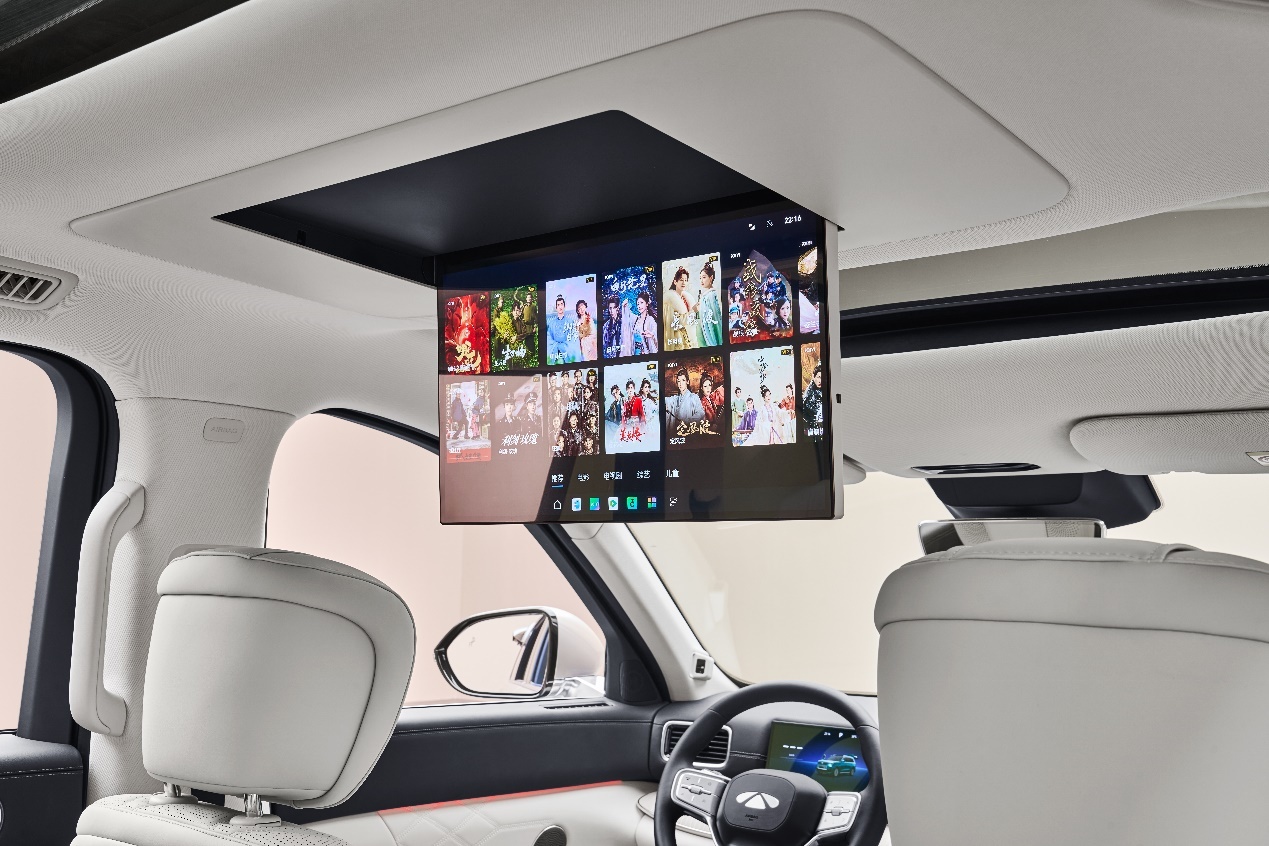 除了前排30英寸寰宇屏,后排也拥有17.3英寸娱乐屏,共同构成前后双IMAX视听空间,配合伯牙之音23喇叭音响系统,打造出7.5.4.2全景声环绕效果。配合AI智慧无麦K歌,将座舱瞬间变为沉浸式移动音乐厅。