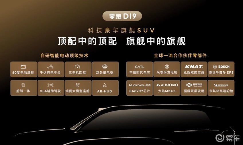 若说设计是颜值,那全域顶级供应链就是D19的“硬核肌肉”。全系标配宁德时代电芯,确保能量安全;博世R-EPS转向、大陆MKC2线控制动、孔辉双腔闭式空悬,搭配米其林低滚阻轮胎,让驾控既有“魔毯般平顺”,又有三电机纯电版540kW功率、增程版400kW功率的性能。内饰的百万级Nappa工艺全粒面真皮,再加上全车14块玻璃中11块双层隔音玻璃,将“舒适”落到每一处细节。