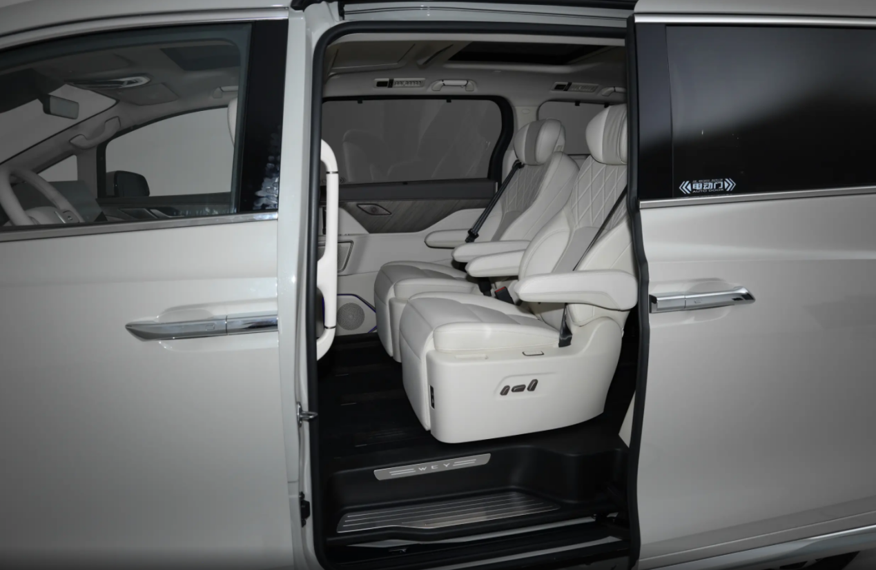 而在其它配置上,魏牌高山7标配市面上主流的50W手机无线快充功能,同时还有26英寸的AR-HUD抬头显示,以及方向盘加热,这些对于驾驶者而言都能带来不错的体验。而除此之外,魏牌高山7的前排和中排座椅同样标配了通风和加热功能,同时主驾驶还有专属的座椅按摩,对比魏牌高山8而言,舒适性配置确实有略微的衰减,但并不会直接影响到用户的驾乘体验。而且值得一提的是,魏牌高山7还标配了17.3英寸、3K分辨率的后排吸顶屏幕,以及二排小桌板、23扬声器音响系统和车载智能冰箱,这些功能配置也进一步提升了新车的产品竞争力。