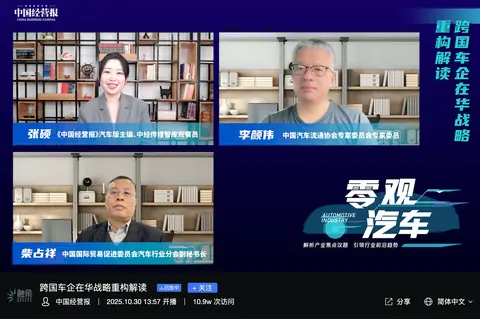 10月30日,《中国经营报》“零观汽车”直播间特邀中国汽车流通协会专家委员会专家委员李颜伟,围绕“跨国车企在华战略”展开深度对话,系统梳理跨国车企在中国的发展路径,剖析当前阶段所面临的核心挑战,并共同探讨破局之道。