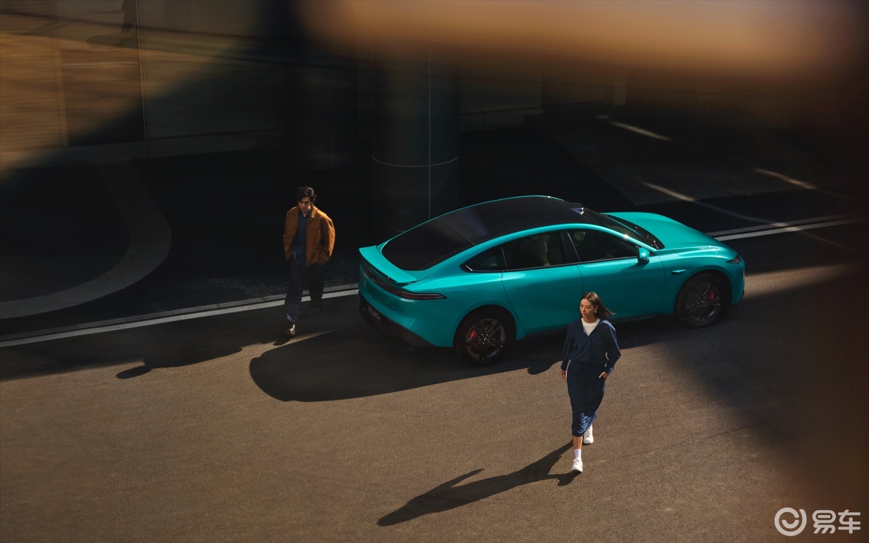 eπ007+明显瞄准年轻消费群体,提供苍穹灰、港湾蓝车身配色,19英寸疾风之影运动轮辋,采用宽体低趴的弓形溜背姿态,荣获德国红点产品设计奖。