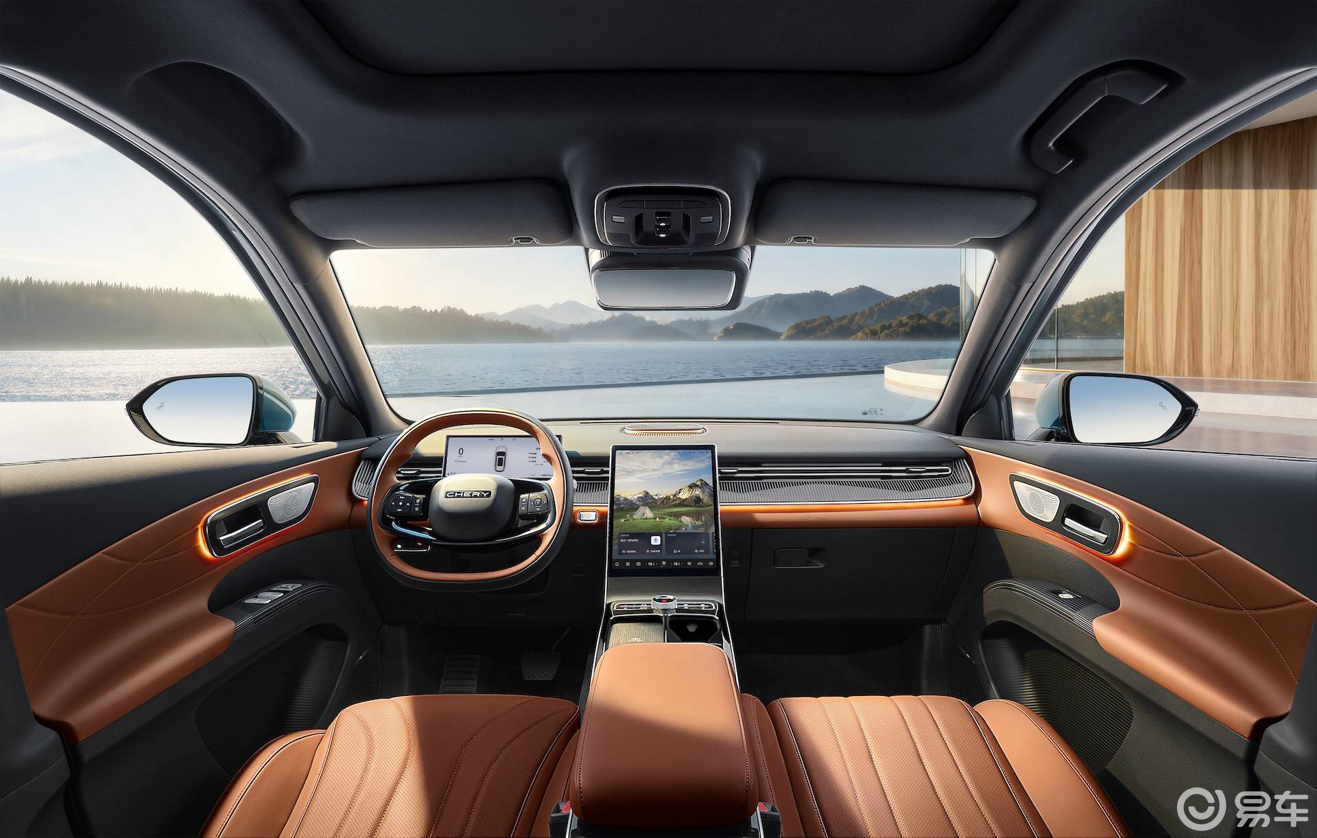 内饰采用环抱式座舱设计,配备双12.3英寸联屏和8英寸空调触控屏,营造出强烈的科技氛围。2825mm超长轴距带来同级最大的970mm后排腿部空间,配合可纯平放倒的第二排座椅,后备箱容积可扩展至1453L。特别设计的"电感沙滩椅"支持多角度调节,可一键切换"移动客厅"和"露营大床"模式。