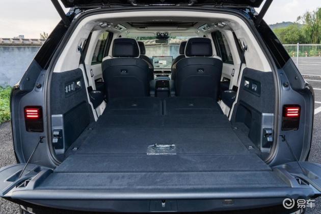 问界M9的车内也为用户提供了Nappa真皮座椅,采用2+2+2布局,前三排座椅也支持基本的电动调节功能,相对极氪9X,少了二排座椅的旋转调节和记忆功能,但前排座椅可以放平,二排小桌板暂时需要选装。车尾的后备厢基础容量316L,可放3个20英寸行李箱,将后排座椅50:50放倒后,能将储物空间提升到1252L,虽然容量上略输于极氪9X,但日常使用也足够了。