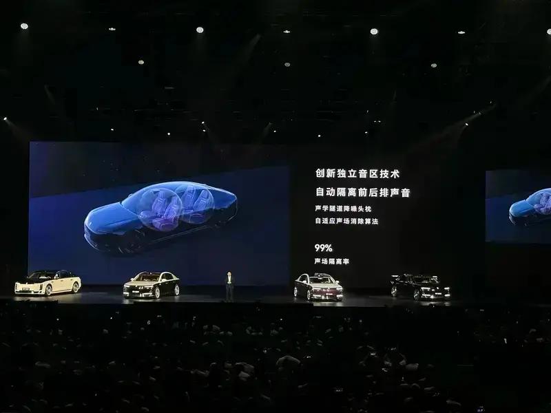 此外,尊界S800还配备了创新的独立音区技术,拥有自动隔离前后排声音技术。据介绍,其通过声学隧道降噪头枕实现自适应声场消除算法。