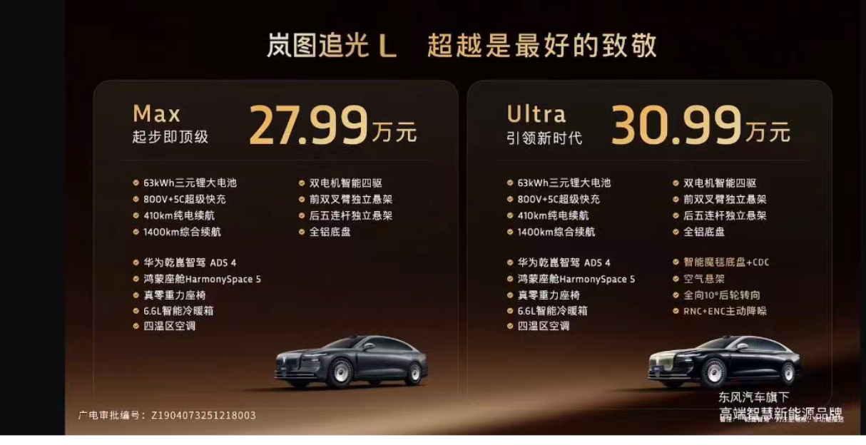 岚图追光L售价27.99万起,看起来像百万级轿车?