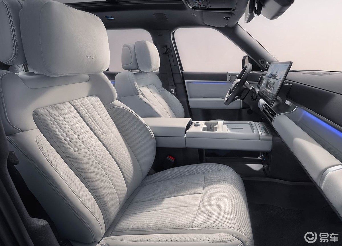方程豹钛7则通过“五感座舱”打造全方位舒适体验:全车标配真皮座椅、云感头枕及通风加热功能,配合20扬声器音响、主动香氛系统及智能防晕车模式,满足家庭成员的多样化需求。其独创的可拆卸后排Pad可独立控制儿童座椅通风、空调温度,并支持Switch等设备连接,打造专属儿童娱乐空间。此外,车载无人机、电吸尾门、车载冷暖冰箱等配置也提升了实用性。