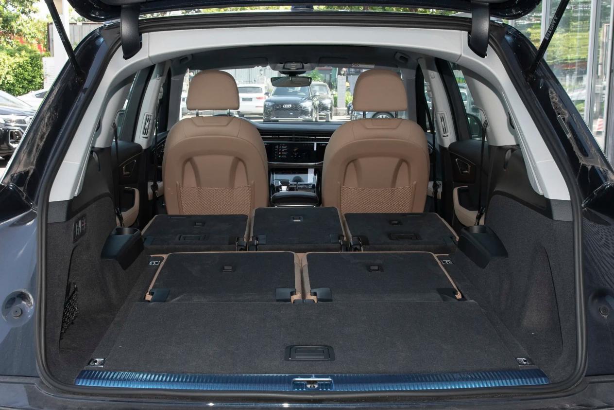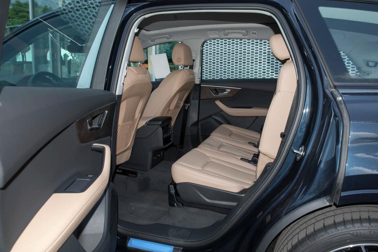 空间表现,往往决定着车辆的实用价值,两款车在这方面,有着不同的侧重方向。先来说说奥迪Q7,它的车长5077mm,轴距刚好3000mm,属于5门7座中大型SUV,2+3+2布局的座椅,采用的是真皮+仿皮材质,前排座椅还具备加热、通风、主驾记忆等功能,后排座椅可以50:50电动放倒,当然,前后扶手都是标配,后排隐藏式扶手自带杯架。