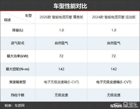 动力方面,新款车型拥有三种动力可选,消费者选择余地更大。其中,本次对比的油电混合车型依旧搭载1.8L自然吸气发动机,最大功率72kW,最大扭矩为142N·m。