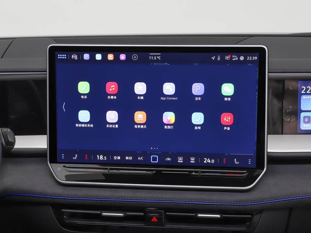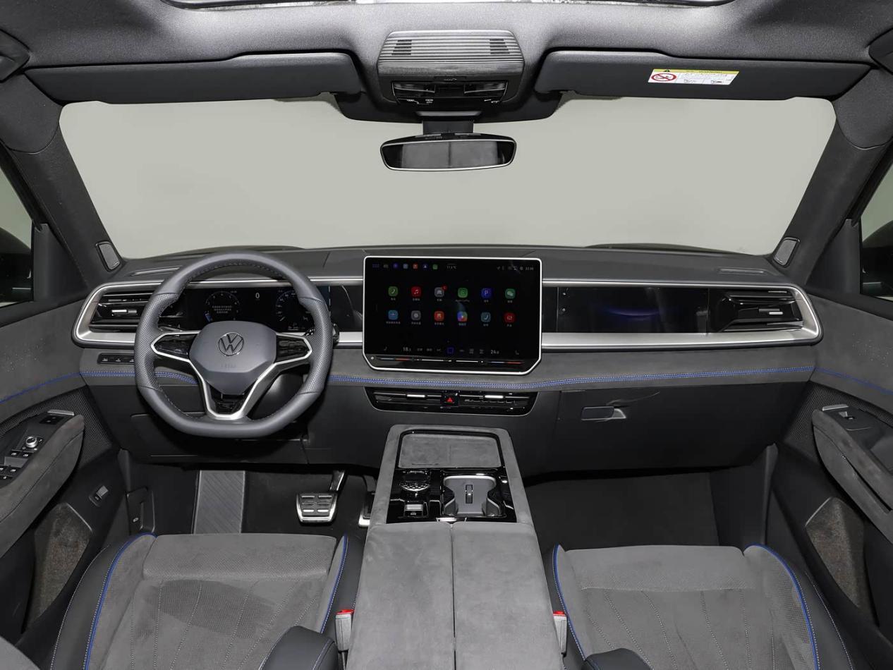 内饰设计明显向数字化方向倾斜,配备10.3英寸全液晶仪表盘与15英寸2K高清中控大屏。副驾驶前方还特别设置了11.6英寸娱乐屏,为乘客提供独立的多媒体体验。内饰材质与工艺保持大众一贯的高标准,细节处理精致,夜晚时氛围灯的点亮效果营造出媲美豪华品牌的座舱环境。