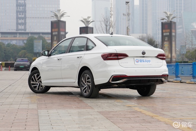 车身侧面,轩逸取消了老款标志性的C柱熏黑饰条,溜背倾角更大,整体姿态更低趴。搭配分段式腰线和传统机械式门把手,配备16英寸五辐运动轮毂。车尾设计与前脸呼应,贯穿式尾灯组内部加入熏黑处理,搭配上翘的小鸭尾扰流板,后保险杠下方点缀碳纤维纹路装饰条,采用隐藏式排气布局,整体简洁又有层次感。朗逸依然是传统的三厢造型,搭配贯穿式腰线,提供15英寸和16英寸两种尺寸的轮毂,门把手也是传统样式设计。车尾配备熏黑LED尾灯,灯腔内部采用分段式光带设计;下方配备黑色运动下包围,与车身线条自然衔接,同样采用隐藏式排气布局,让车尾整体观感简洁规整。值得一提的是,朗逸的高配车型搭载了转向辅助灯,能进一步提升行驶安全性。