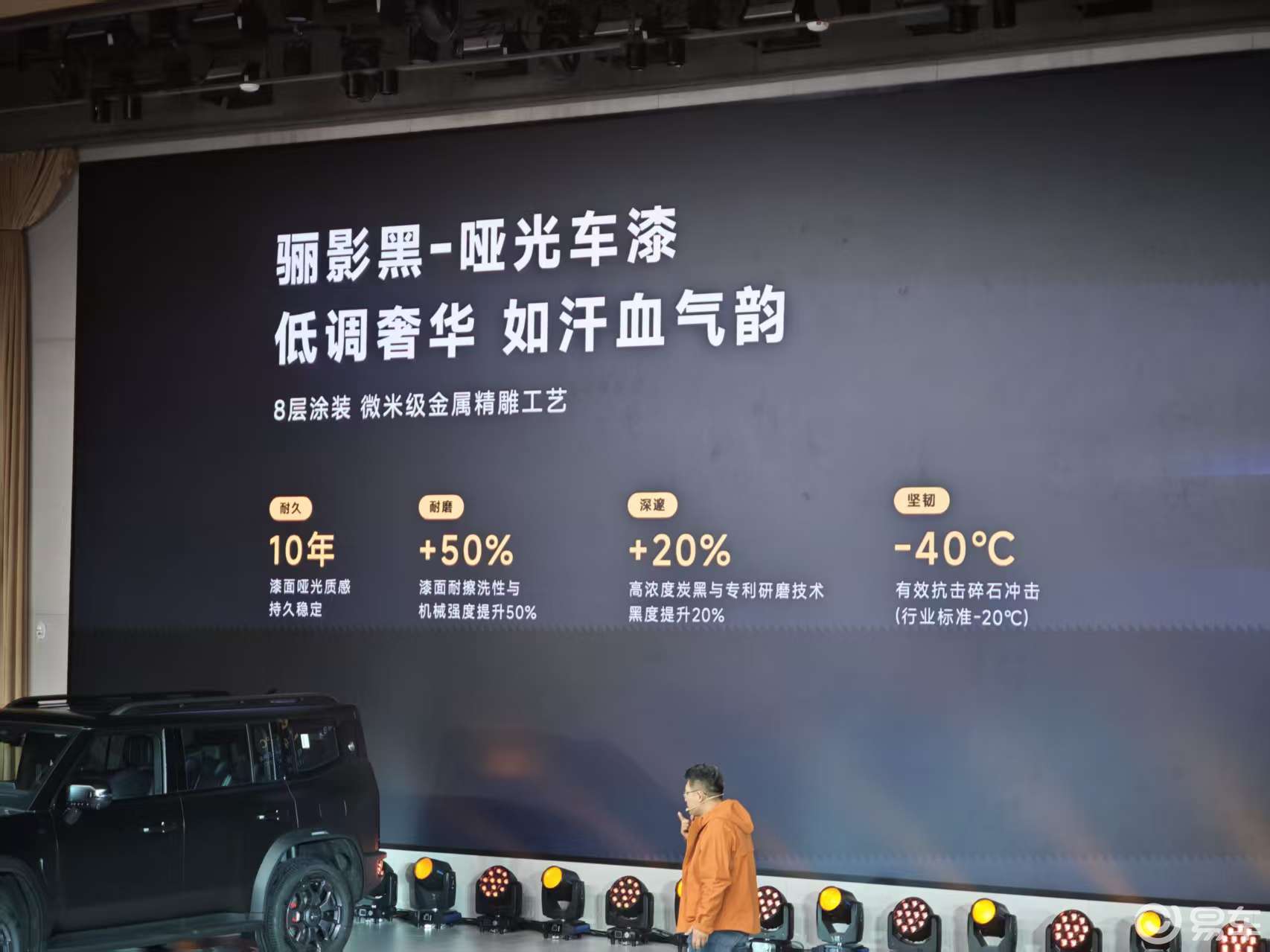 先看外观,两款车都采用了骊影黑哑光车漆,这种车漆用的是微米级金属精雕工艺,静态的时候,像夜行千里马的深邃毛色,低调又有质感,不浮夸、不张扬,不管是男生开还是女生开,都不违和;动态的时候,光线折射下会透出细微的金属光泽,又多了几分锋芒,辨识度拉满。可能有人会问,哑光车漆好看是好看,会不会不好打理?这点捷途早就想到了,这款车漆的耐擦洗强度提升了50%,黑度提升了20%,日常洗车不用担心刮花,也不容易显脏,比普通哑光车漆省心太多。