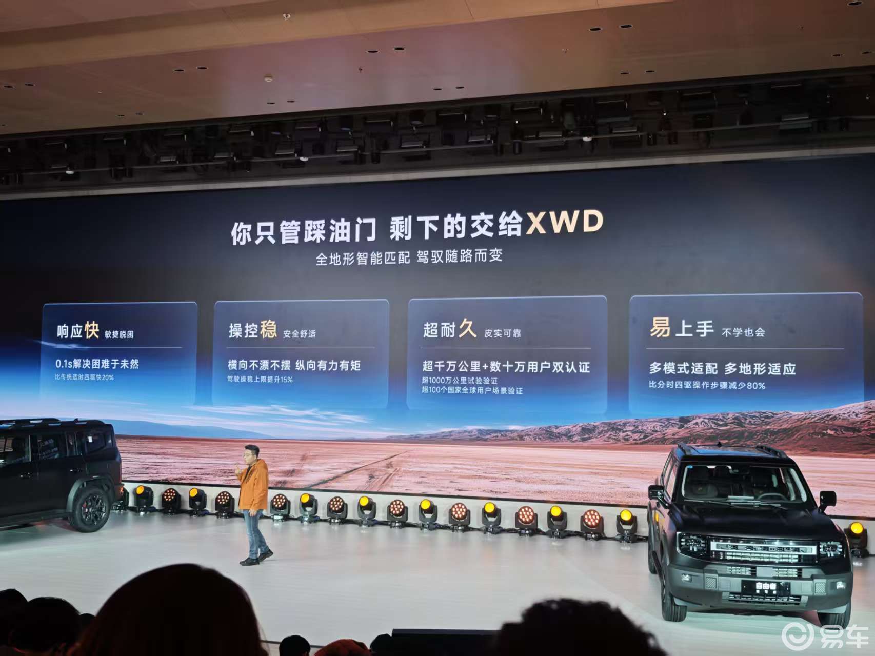 最核心的,还是两款车的动力和越野性能——毕竟是“骏马版”,爆发力和通过性,才是它的灵魂。很多人买硬派SUV,最怕自己是新手,不会操作,越野的时候容易出问题。捷途这两款车,搭载的都是XWD全自动智能四驱系统,这款系统采用博格华纳最新的第六代四驱技术,响应速度快到0.1秒,比眨眼睛还快,能根据路况毫秒级切换驱动模式,真正实现“你只管踩油门,其他交给捷途XWD”。