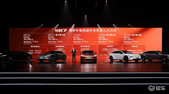 从定价来看,铂智7限时补贴权益后14.78万起、20万内封顶,大幅低于同级别纯电旗舰车型的定价,让更多消费者能够轻松触及豪华纯电体验;从配置来看,该车将大型轿车尺寸、华为鸿蒙智舱、双腔空悬、激光雷达智驾等顶级配置全面下放,实现“入门即豪华、满配不溢价”;从品质来看,丰田百年造车经验背书,加上严苛的安全验证和“厂家三担责”政策,为用户提供全方位的品质保障;从服务来看,服务2.0时代的全面升级,让用户从购车到用车的全流程都能享受贴心服务。
