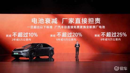 对于用户顾虑的电池衰减问题,铂智7以更严苛的条件作为电池寿命设计前提,植入丰田严苛的“全周期0析锂”安全要求,叠加精准的电压保护策略,有效延长电池使用寿命,减少电池衰减。凭借强大的品质底气,广汽丰田给出明确的电池衰减担责承诺:电池衰减2年或5万公里内超过10%、6年或10万公里内超过20%、8年或15万公里内超过25%,厂家直接担责,免费为用户更换全新原厂电池,彻底解决用户“电池衰减无保障”的后顾之忧。