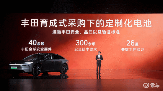 针对用户普遍关切的电池品牌问题,广汽丰田正面回应,明确表示“不唯品牌知名度论”,而是综合考量电池的安全性、品质可靠性、购车成本等关键因素,为用户提供更均衡、更靠谱的解决方案。为了确保电池品质达到丰田全球标准,广汽丰田采用“育成式采购”模式,安排工程师提前2年反向进驻电池厂,针对铂智7的电池提出超过300项安全标准,对电池生产的26道关键工序进行严格验证,确保每一个零部件、每一道工序都符合丰田的严苛要求。
