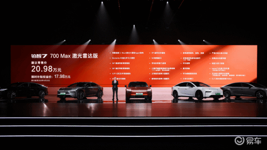 700Max激光雷达版在700Max版的基础上,增加了Momenta R6大模型高阶智驾辅助系统,限时补贴权益价17.98万元。用户再加5000元选装基金,即可升级至700Max激光雷达双腔空悬版,最终18.48万元就能一次性配齐华为鸿蒙座舱5、Momenta R6大模型激光雷达智驾、双腔空悬等超豪华三件套,成为20万内唯一能同时拥有这三大核心配置的纯电车型,性价比拉满。